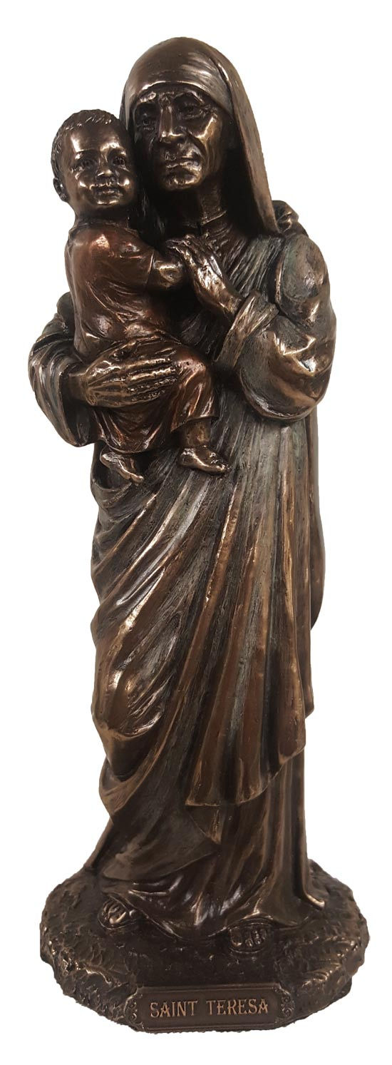 SR-77143, St. Theresa-Calcutta, Lightly Hand-Painted, Cold Cast Bronze, 8"